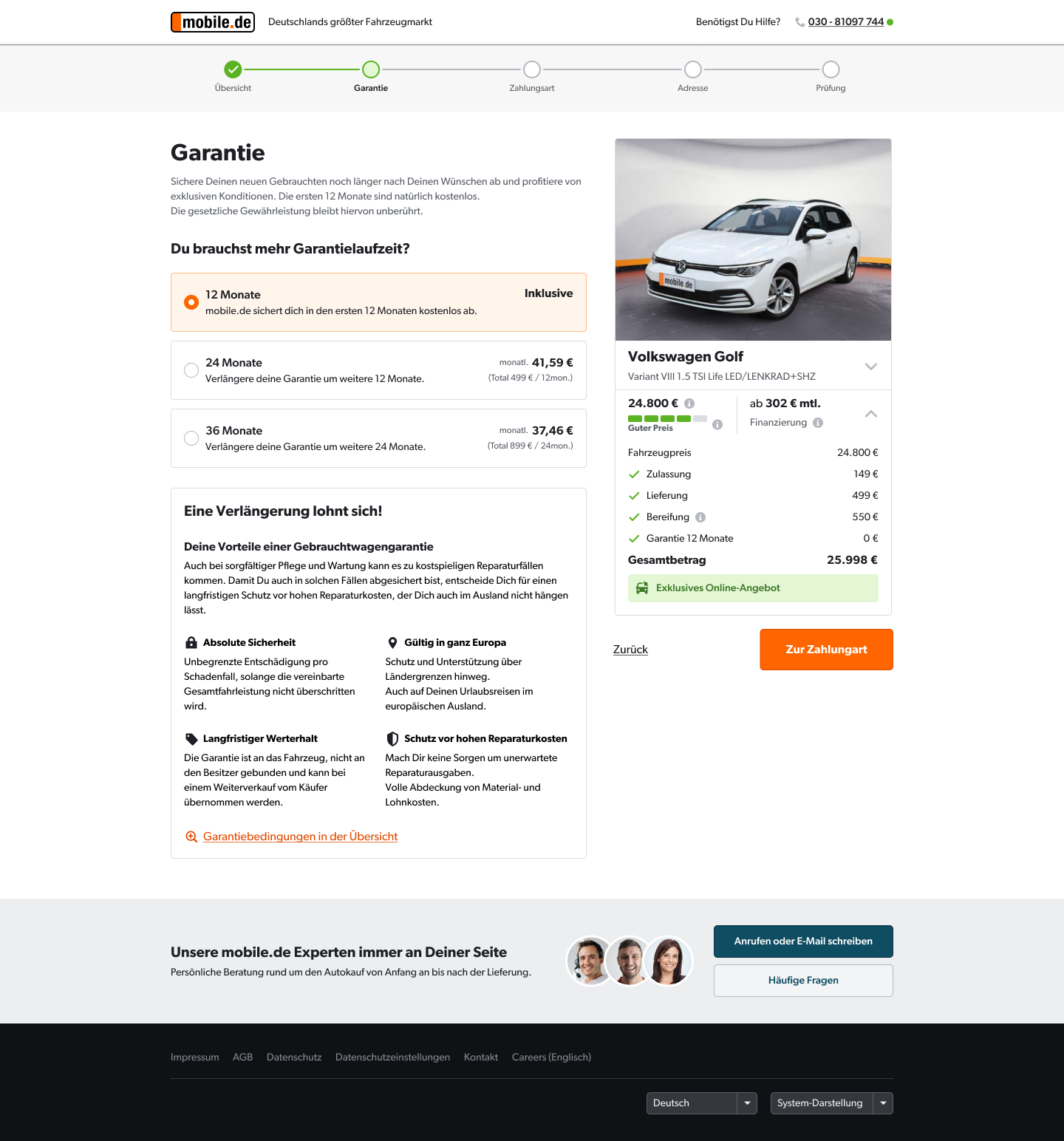 At mobile.de, Germany's leading online vehicle marketplace, the online-kauf team (Online Buying of cars) aimed at integrating an extended warranty option for cars into the checkout process. To validate the feasibility of this feature, a fake door test was planned. But, to ensure undistorted quantitative results, it was essential to validate the content from a user perspective, ensuring comprehensive understanding of warranty terms and benefits while maintaining simplicity and clarity in the checkout process.